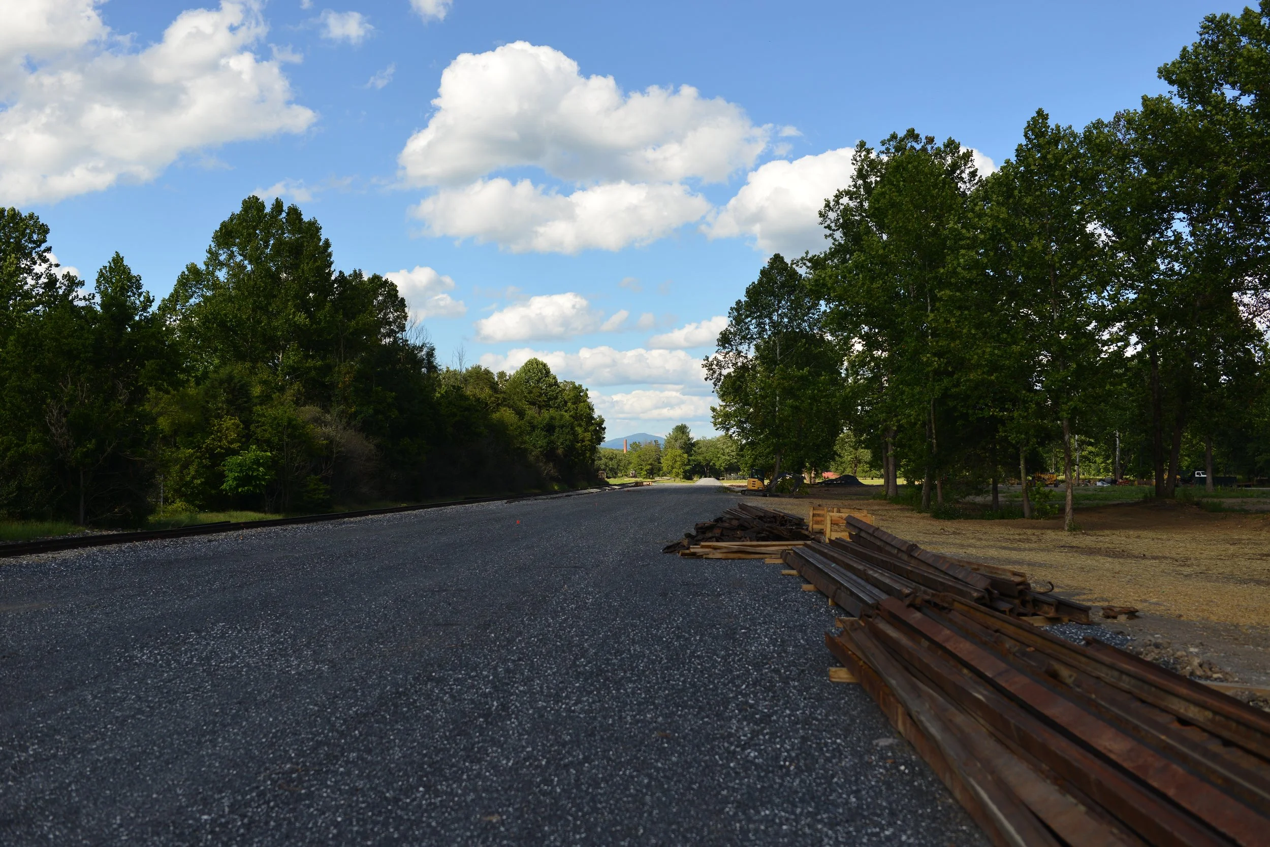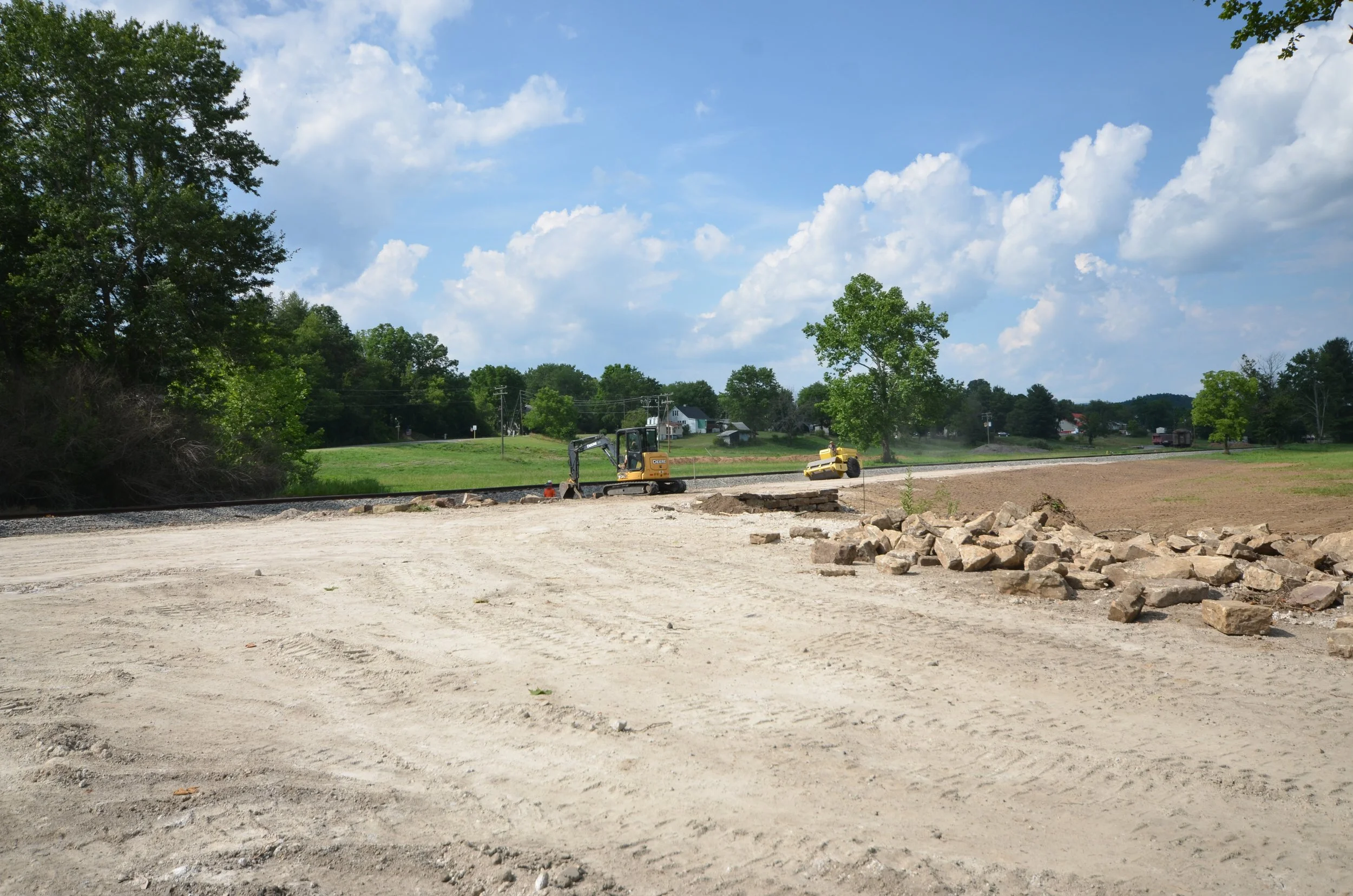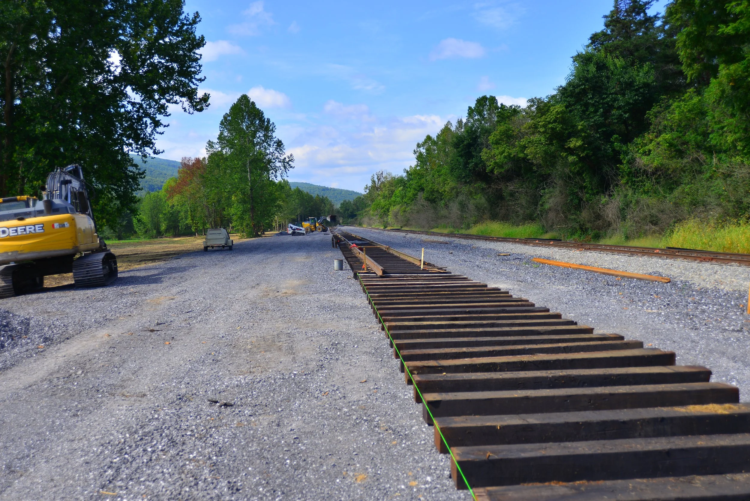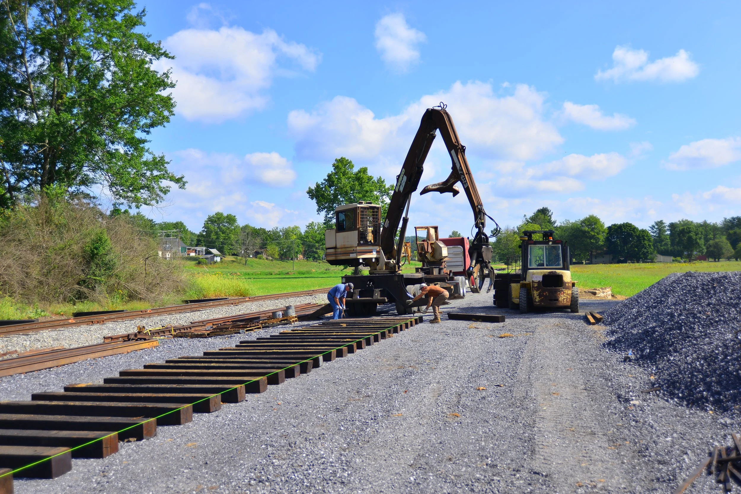 Once excavation and grading were completed, the entire site was finished with gravel. Rail and ties were only delivered about a month before the first scenic rail excursions were scheduled to depart from the site.