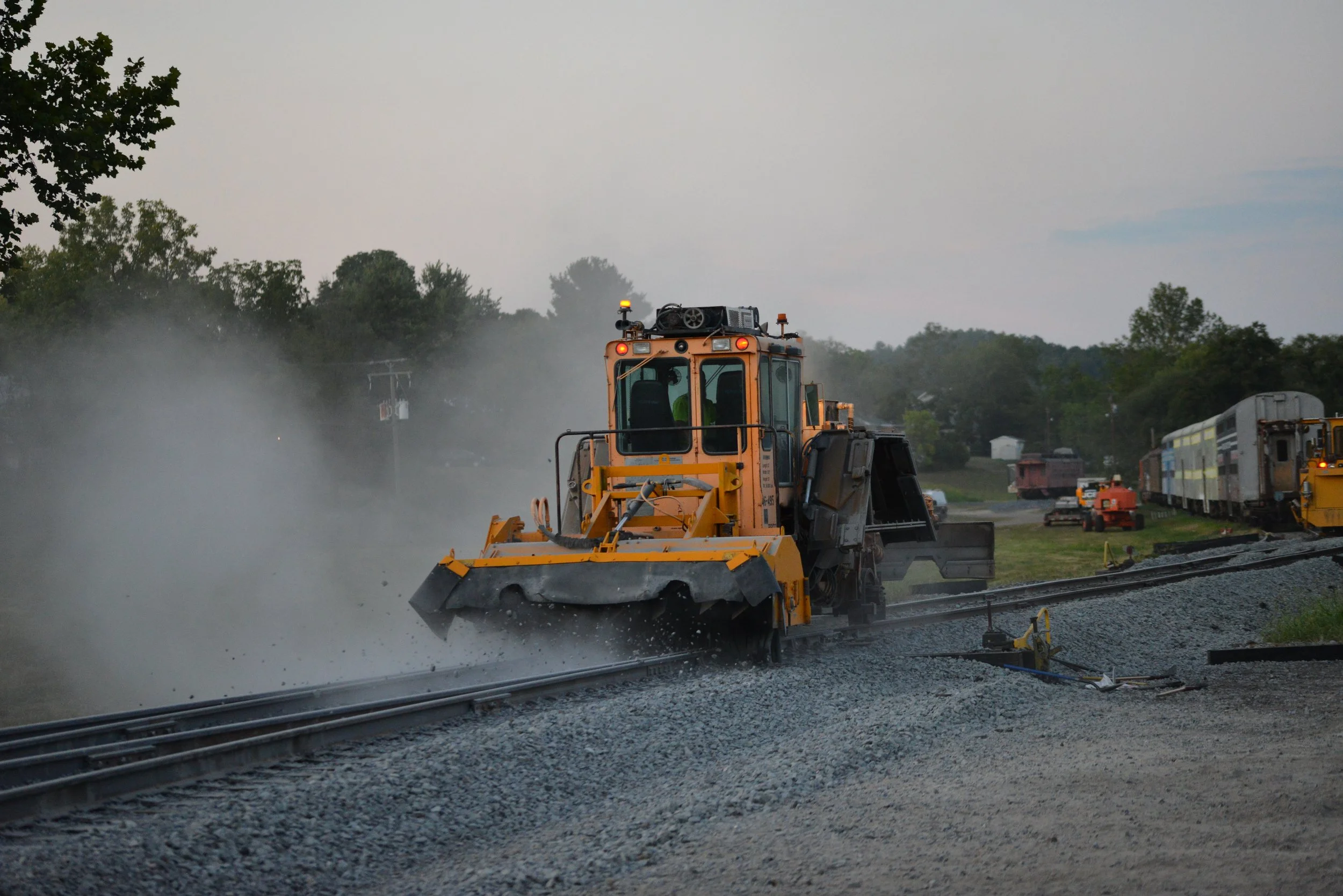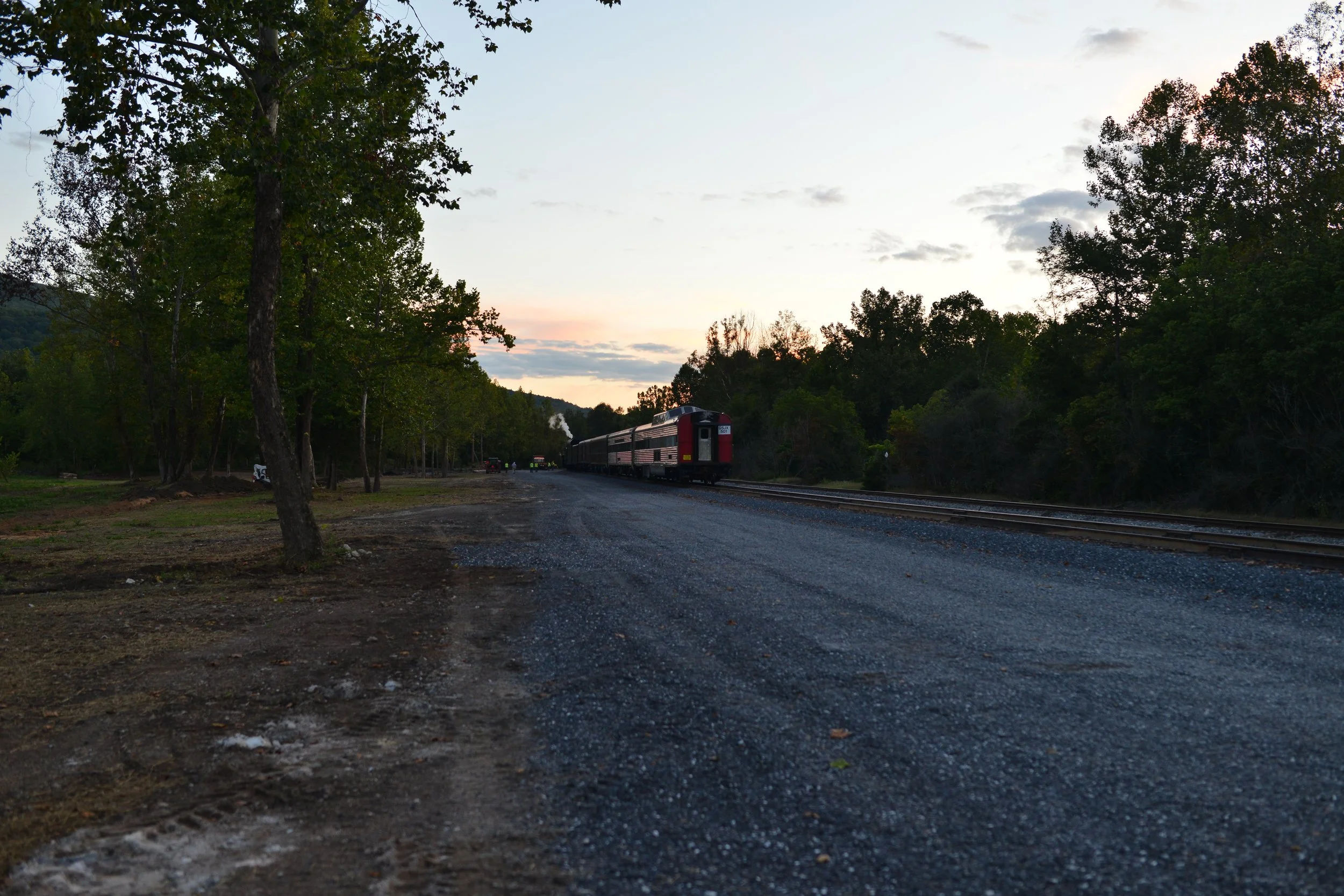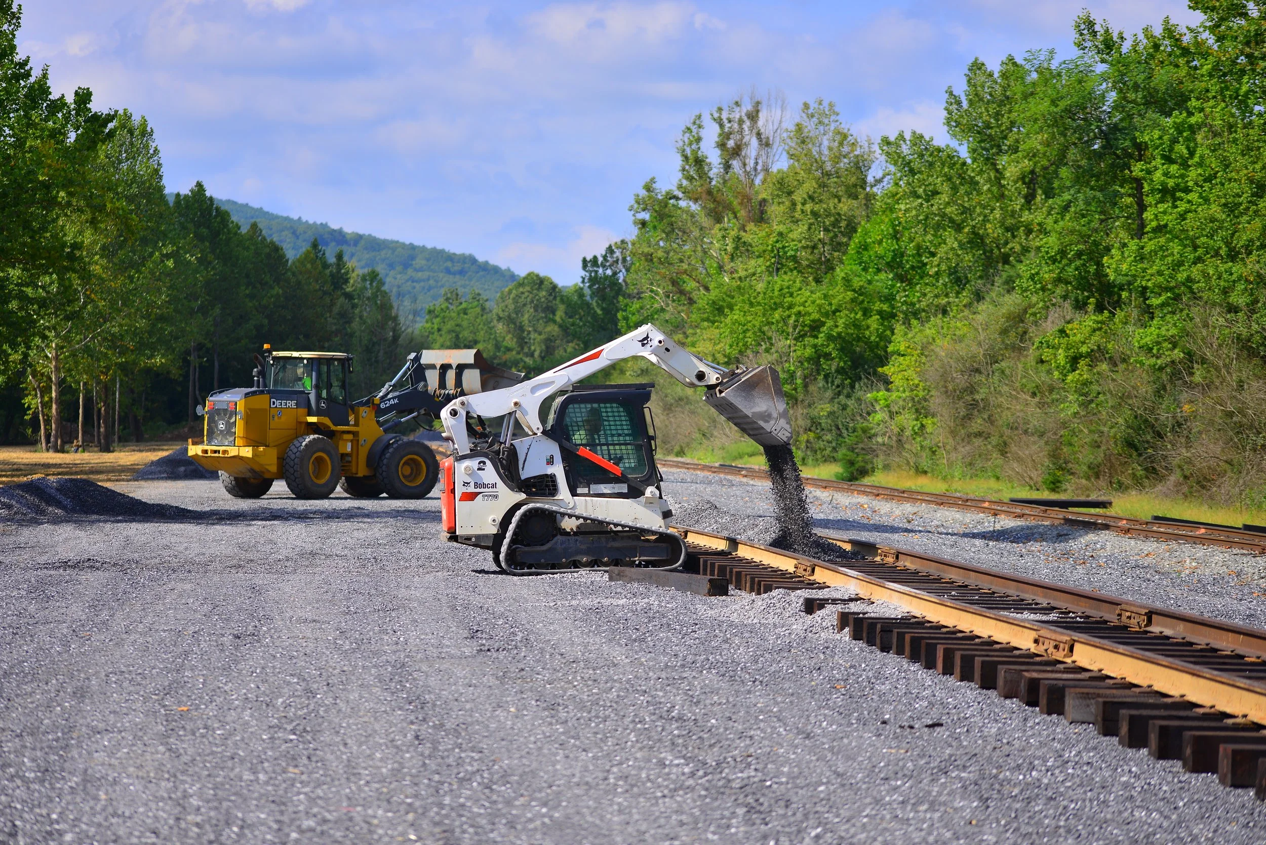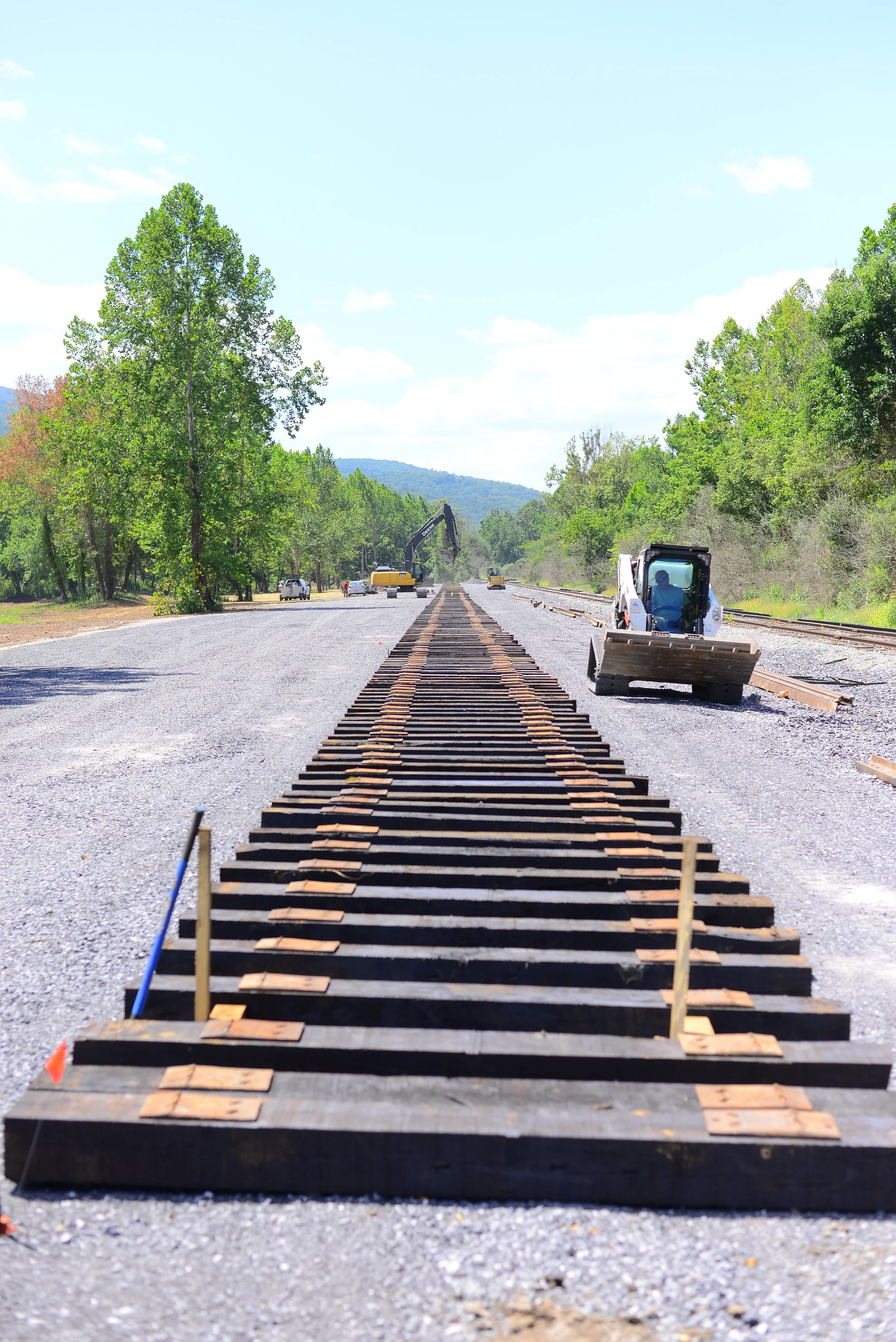 Once excavation and grading were completed, the entire site was finished with gravel. Rail and ties were only delivered about a month before the first scenic rail excursions were scheduled to depart from the site.